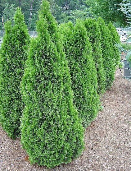Emerald Greens are one of the thickest evergreens you can plant. They form a solid privacy fence that you'll never have to prune. They also look incredible in large decorative pots right on your doorstep. Plant them along your garden border, or as an attractive anchor tree at the corners of your home. This tree is very adaptable and versatile. The possibilities are endless, making Emerald Green Thuja an extremely popular hedge tree.