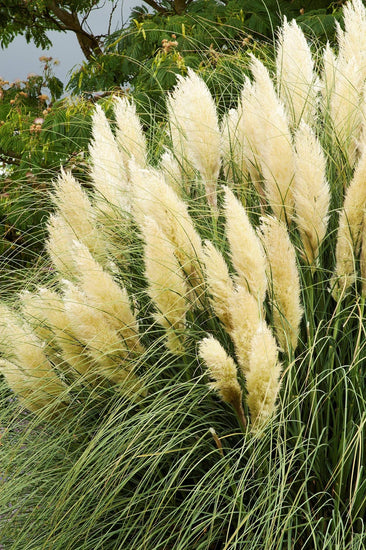 2 inch (pot size) Pampas Grass plant. Ornamental grass with showy, white 30-inch plumes held above narrow, sharp-edged foliage that forms large clumps. Good, natural-looking screen/windbreak or landscape accent. Flowers can be dried.