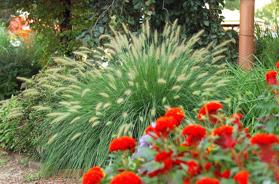 This fast-growing perennial grass has fox-tail like flowers beginning in summer lasting through fall. Its clumping growth habit creates beautiful glossy green blades with ivory, white flowers. It grows up to 2-3 feet tall. Ideally used as mass planting, specimen, and accent plant.